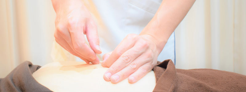 症状に合わせて、鍼または電気鍼を使用した施術とお灸での施術を行います。